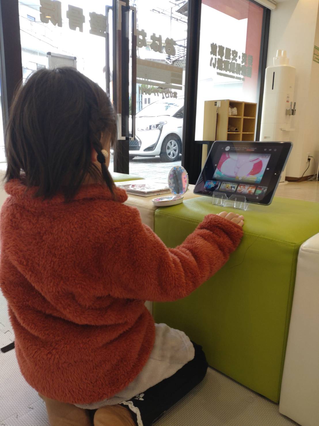施術中は受付スタッフが一緒に遊んだり、タブレットを見たり、塗り絵をして待っています。
